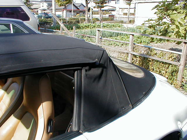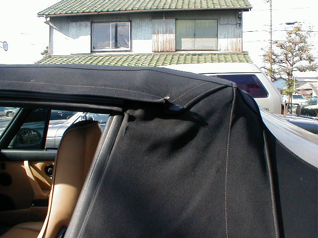 幌の破れ部分の一部取替えです。一度中の骨組みを何処かで修理をされているみたい