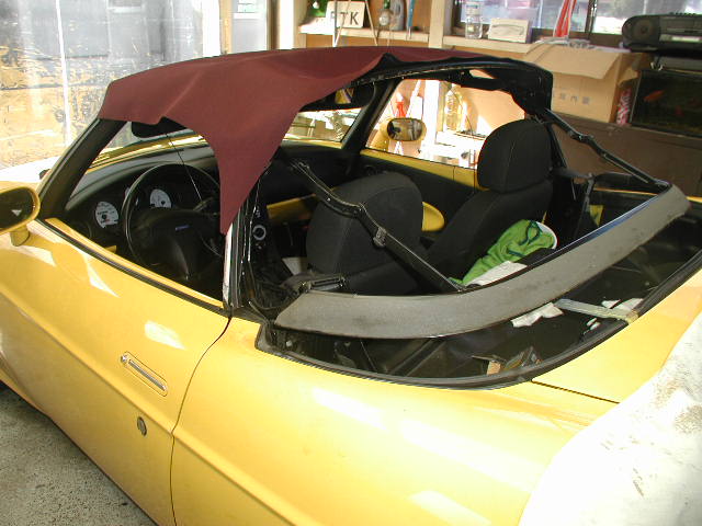 ネットをご覧になり、張替えにお出で頂きました、黄色のボデーに少し濃い目のエンジなかなか良いですね