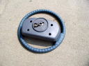 これから張り替えるのです 張り替わるのは、少し先に なりますが、ハンドルを外し 作業の順番に紹介させて いただきます。 2002/9/28 この車は、遠く横浜より、 ネットでHPをご覧になり はるばる名古屋まで お出でくださいました。 有難う御座います。 |